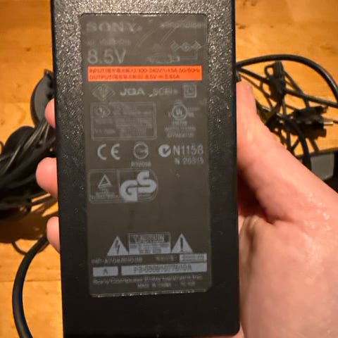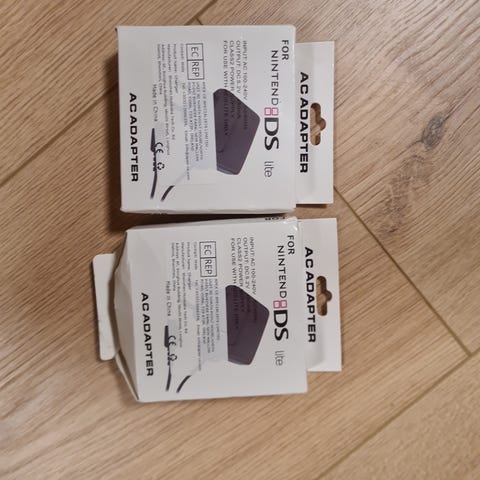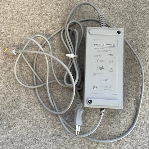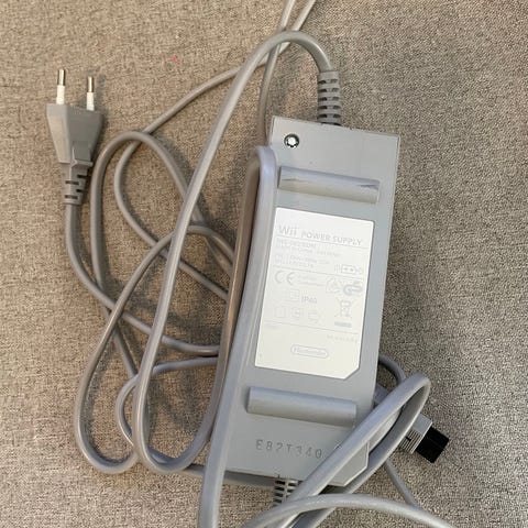Nintendo AC Adapter Power Supply i grå farge. Strømadapter med europeisk plugg og kabel for tilkobling. Brukes til å levere strøm til kompatible Nintendo-enheter.