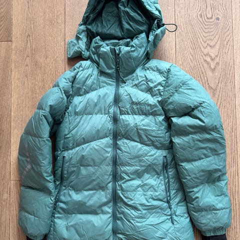 Bergans Bismo down youth dunjakke for gutt i størrelse 152. Jakken er grønn og laget med dun som isolasjonsmateriale. Den har hette og hel glidelås foran.