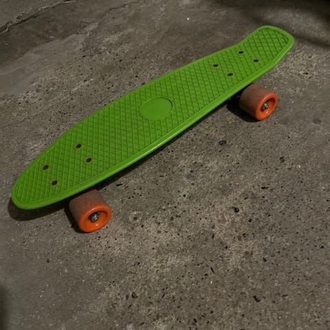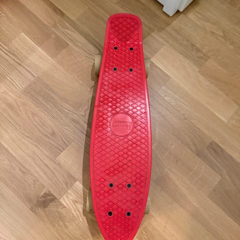 Penny Board skateboard i turkis farge. Brettet er laget av plast med et mønstret overflate for bedre grep. Skateboardet har fire hjul og metalltrukne trucker, egnet for både nybegynnere og erfarne brukere.