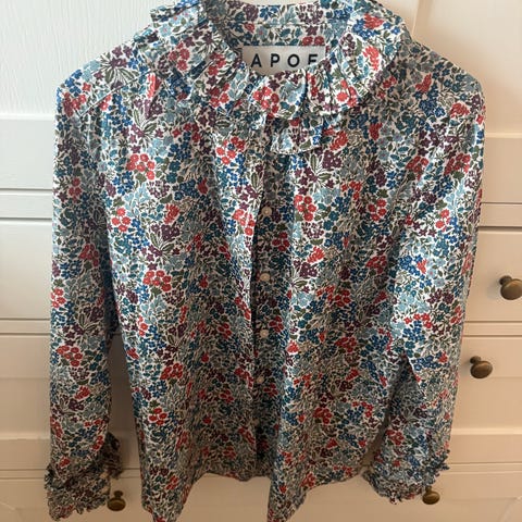 Skjønn bluse fra APOF med morsomme detaljer. Nb! Merk at frill på armene er fjernet, se siste bilde.