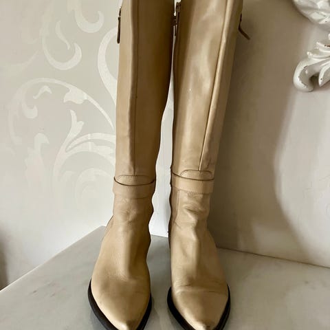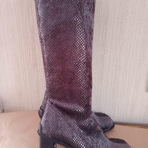 Zara støvler i størrelse 39. Støvlene har en kombinasjon av svart og brunt materiale med dekorative mønstre. Laget i India, med en spiss tupp og blokkhæl. Egnet for bruk som fottøy i ulike anledninger. Kuleste bootsene. Føles som skinn, men er litt usikker