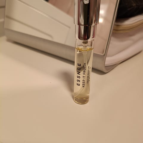 Jeg har brukt bittelitt av den. Blå linje på bilde 2 viser hvor mye som er igjen i flasken.