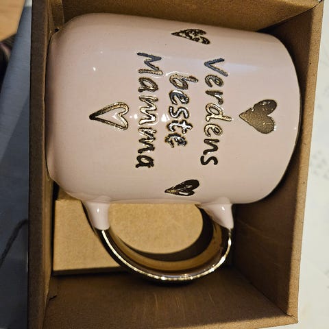 Selger en ny stor kopp med tekst mamma. Farge mørke rosa og gull. En perfekt gave til morsdag. Kam sende mot at kjøper betaler. Hentes I Fyllingsdalen