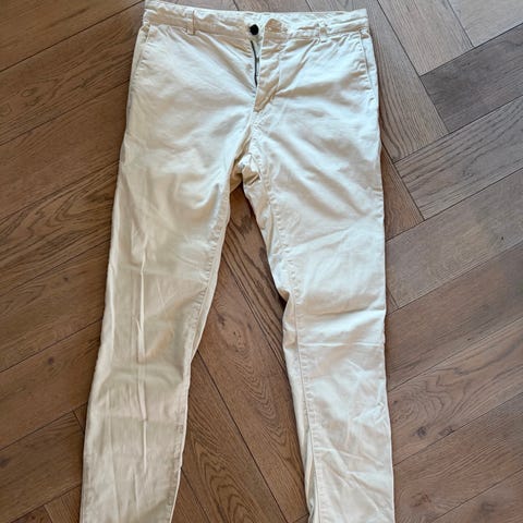 Selger en stilren kordfløyelsbukse fra MNG i størrelse EUR 44 (UK/USA 34). Klassisk beige/cream farge som passer til det meste. Tilsvarer størrelse M