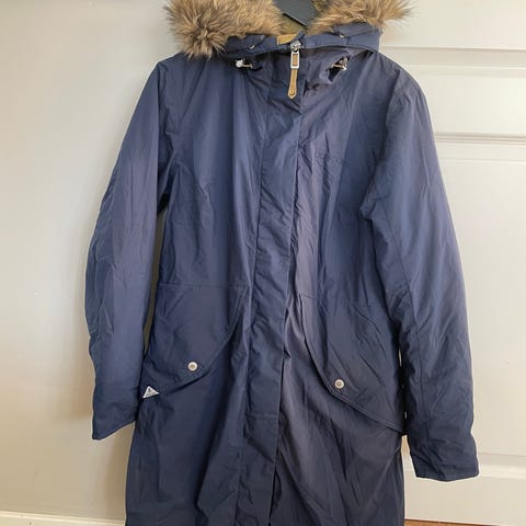 Svart Didriksons vinterjakke, str 40. Hoftelommer med glidelås, avtagbar hette med fuskepels, innsvinget, ekstra armkant. Brukt 1 gang, så den fremstår som ny.