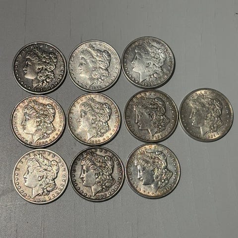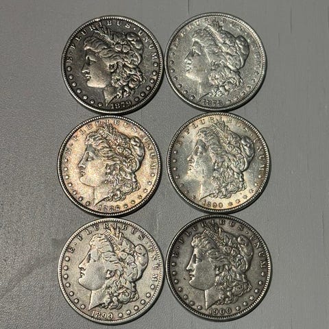 Morgan Dollar er en sølvmynt fra USA, utstedt i 1921. Denne samlingen inneholder 4 mynter.