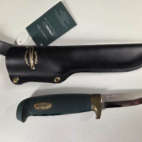 Lett å bære – denne dobbeltkniven veier bare 300 g. Bladene er laget av rustfritt stål. Bruk Skinner til tyngre arbeid og Little Condor til mer delikate jobber.