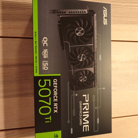 Helt nytt, uåpnet 5070 Ti skjermkort selges. Kjøpt på Elkjøp i januar, selges som den er, kvittering kan medfølge mtp reklamasjonsrett. Kan sendes på kjøpers regning og risiko
