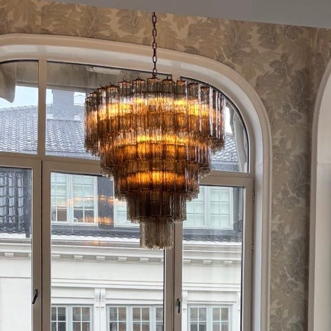 Lysekrone i krystall fra Carla G60, fremstår som ny. Selges med alle lyspærene, 13 stk.