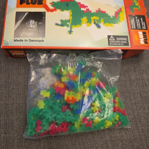 Plus Plus 100 pcs barn leker byggeklosser. Settet inneholder 100 byggeklosser i ulike farger, designet for barn. Klossene kan brukes til å bygge forskjellige figurer og former, og er laget av plast.