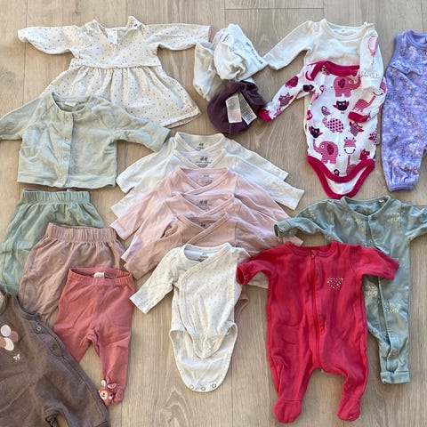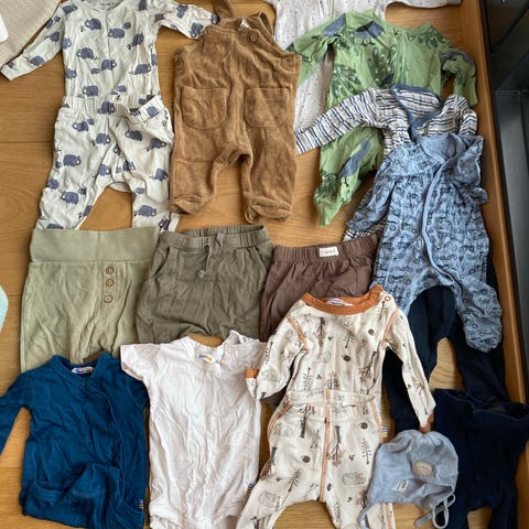 Babypakke med 10 plagg i str. 50 og 56: