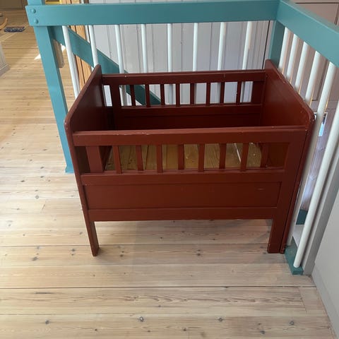 Madrass kan følge med om ønskelig. Bredde 65 x 150/84. Flere bruksmerker og klistremerker på ene siden. Må hentes på Ringshaug- Tønsberg