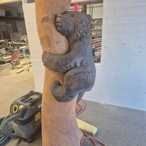 Unikt utskjært hjortedyr mor og barn lagd i Indonesia. Høyde totalt ca 2 meter. Pris kan diskuteres. Må hentes i Heggedal.