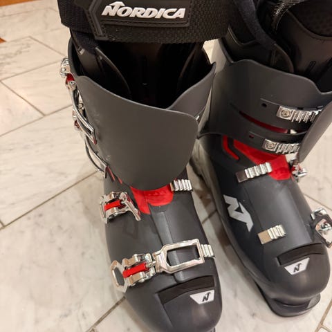 Nordica skistøvler i grå og svart farge. Str 260-265 (ca str 41)Utstyrt med fire spenner for justering og god støtte. Passer til alpinski.