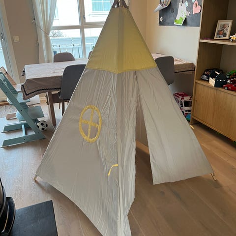 Pent brukt lite leketelt med tunnel som kan festes på. Fra ikea. Hentes på lura