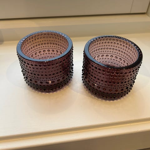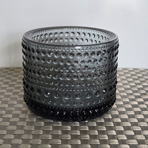 Grå Kastehelmi lysholder fra Iittala. For telys. Ikke synlig brukt.