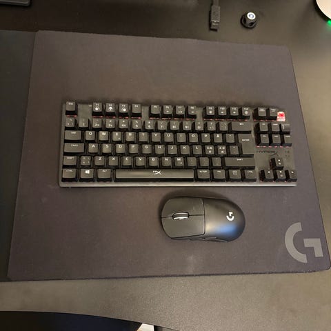Logitech G/hyper x/ blue gaming tilleggsutstyr i hvit farge. Inkluderer trådløst headset, trådløs mus, mekanisk tastatur og mikrofon med stativ. Utstyrt med USB-mottakere for trådløs tilkobling. (Ikke tråløs mikrofon)