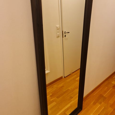 IKEA Hemnes speil med svart ramme. Speilet har et enkelt og klassisk design som passer til ulike rom og innredningsstiler.