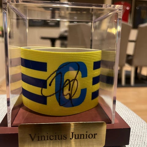 Eksklusivt signert kapteinsbind av Bruno Fernandes, fint presentert i ferdig display (følger med).