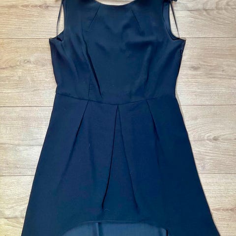 Mango hverdagskjole i størrelse XL for kvinner. Kjolen er svart og laget av viskose. Den har lange ermer og et mønster med små prikker.