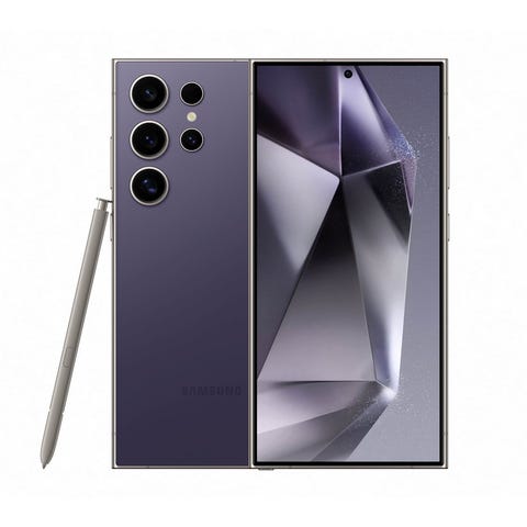 Samsung Galaxy S24 Ultra med 12 GB minne og 256 GB lagring. Telefonen ser fin ut og har minimal slitasje. Kun noen mindre merker øverst på rammen. Ingen riper eller skader.