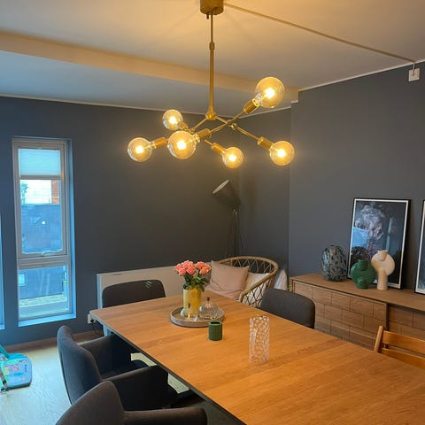 Ledningen til lampen må byttes ut om man ønsker lampen lavere enn det på bildet.
