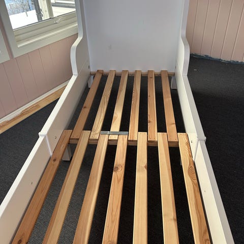 Komplett med ribbebunn og madrass i tre deler hvis ønskelig. Hentes på Harestua.