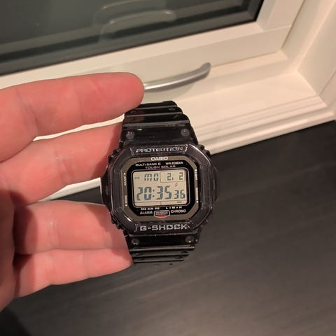Selger en meget robust og pen Casio G-Shock Gulfman, modell G-9100. Klokka ser ny ut og er minimalt brukt. Dette er den klassiske utgaven uten solcelle og radiostyring, kjent for sin driftssikkerhet og rendyrkede funksjonalitet. Gulfman-serien skiller seg ut i G-Shock-familien ved å være spesialdesignet for bruk i fuktige og krevende maritime miljøer, noe som gjør den til en favoritt blant seilere, fiskere og alle som ferdes ved sjøen.