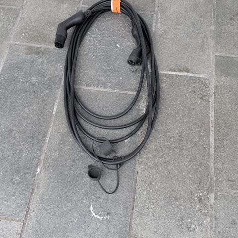 10 meters ladekabel, type 2 til type 1, brukt fra ladeboks til Nissan Leaf.