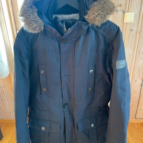 Tykk og varm dunjakke fra Jean Paul i str M. Pent brukt. Mange lommer og god varm hette.