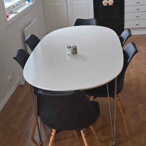 Spisestue med 12 stoler og 40 cm ileggsplate