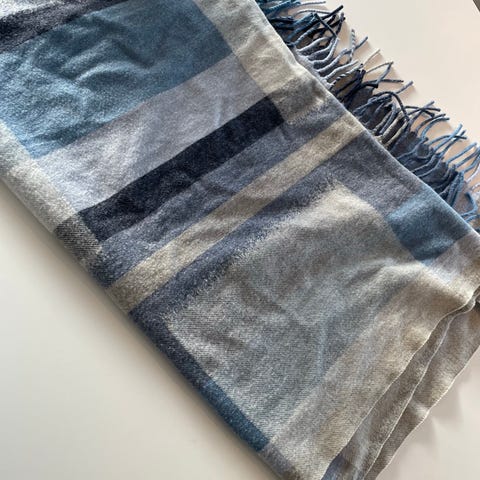 Holzweiler ull skjerf i grå farge, one size. Laget av ullmateriale, egnet for kvinner. Skjerfet har frynser i endene og et rutemønster i ulike gråtoner.