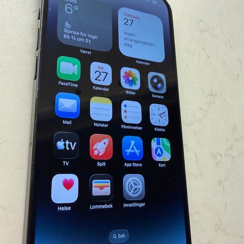 Apple iPhone 14 mobiltelefon med 128 GB lagringskapasitet. Batteritilstand: 85%