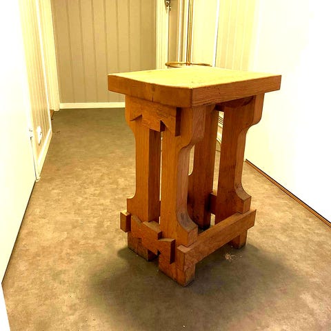 Konstruksjonen er stabil med kraftige føtter og solide forbindelser.