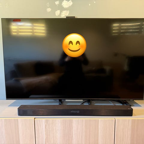 Flott TV med QLED-panel, god lysstyrke og flotte farger. Tizen-OS, med apper for alle streamingtjenester.