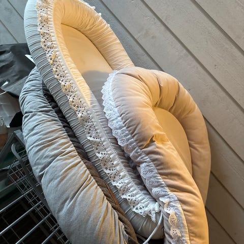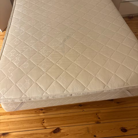 Pent brukt gjesteseng, tar liten plass ved oppbevaring. Kompressor inkl, bare å plugge i kontakt og fylle luft.