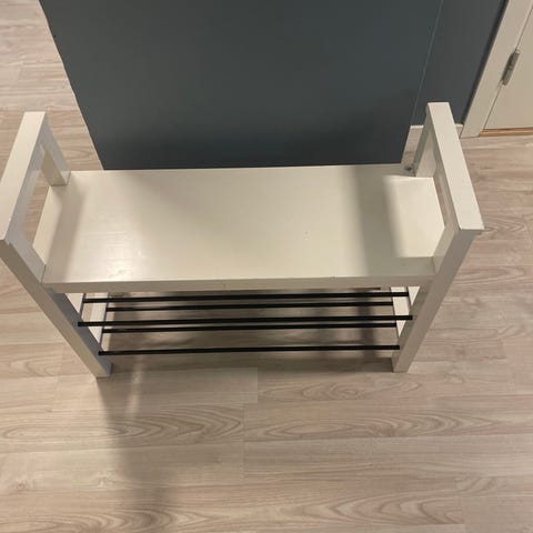 Ikea Pinnig skobenk i god tilstand, kun små bruksmerker. Det geniale med denne benken er at den har to etasjer for sko plus sittemulighet. 78 cm lang, 34 bred og 51 cm høy. Hentes på Fossum.