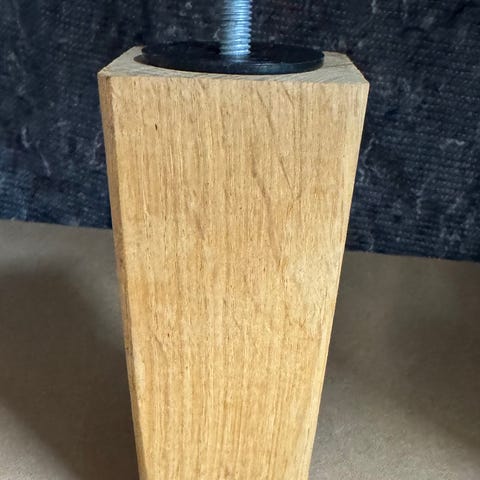 Sofa bein i tre med en høyde på 15 cm, svart farge. Benet har en firkantet form med en metallskrue for montering.
