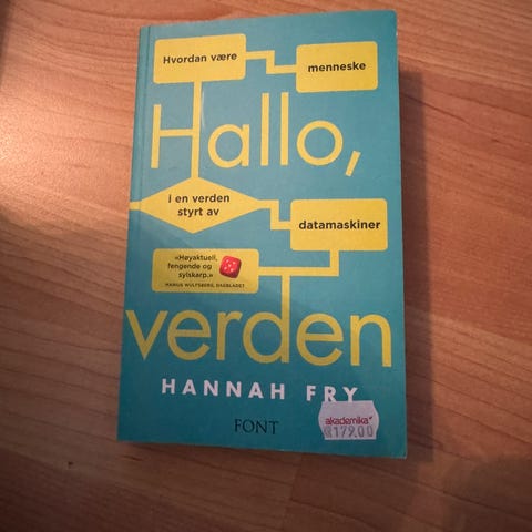 "Hallo, verden" av Hannah Fry. Pent brukt paperback-utgave.