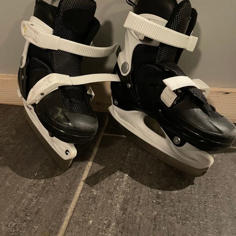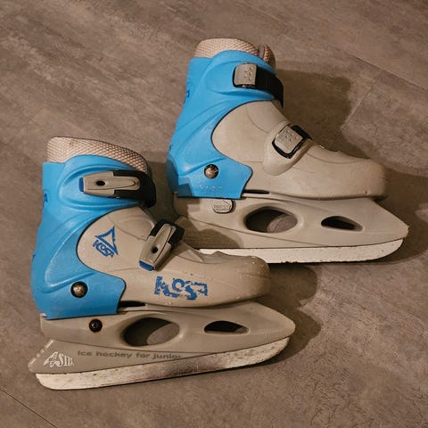 Skøyter for barn i størrelse 30-33. Lett å justere skostørrelsen med en enkel knapp, og deretter skyve fremste del av skøytene frem/tilbake. Spennene er enkle å justere. Ingen rust.