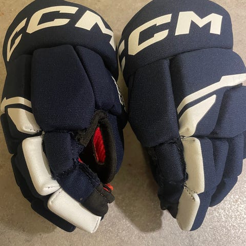 CCM ishockeyhansker i svart og hvit farge. Hanskene er designet for ishockey og har beskyttende polstring på utsiden samt forsterket materiale på innsiden av hendene for bedre grep og slitestyrke.