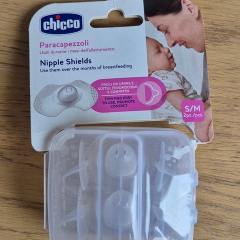 Chicco NaturalFeeling bottles in transparent material. The package contains 5 bottles - 2 x 150 ml + 3x 250ml - 2 silicone nipples and also includes a Medela nipple shield, size M.