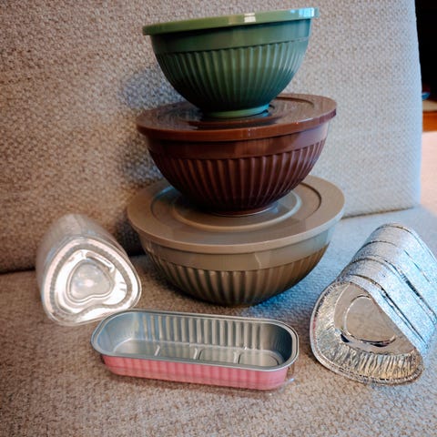 Melamin er et kraftig plastmateriale som tåler en trøkk. Bollene kan brukes til både servering og baking. Lokketholder salat friskt, og deig får heve seg. Tåler fryst ned til -10, men skdd as l ikke brukes i Micro eller stekovn. Anbefaler lokket å håndvask eller øverste hylle i oppvaskmaskinen for å unngå at det krymper