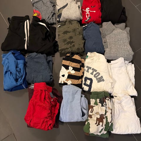 8 t skjorter, 5 skjorter, 5 bukser, 3 gensere, 1 shorts , 1 turbukse og en tykk flisjakke fra Skogstad. Kan hentes i mjøndalen eller sendes.