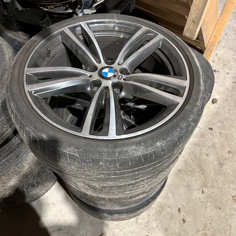 Felgene har stått på en BMW 520d xDrive. De er brukte og har noe normale bruksmerker/små sår da bilen er rullet langt, men de er hele og runde. Dem ligger nå på dekkhotell