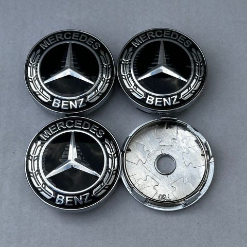 4stk nye Mercedes-Benz senterkopper 75mm svart glans