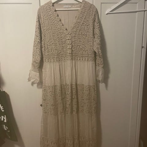Stilig og klassisk okerfarget skjortekjole fra Cubus. Str S, men er ganske vid i modellen, så kan nok passe en M også, med mindre man foretrekker oversize. Brukt kanskje 2 ganger.