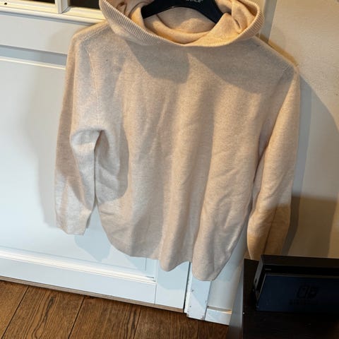 Urban Pioneers genser i ull for menn, størrelse L, farge beige. Genseren er laget av 82% ull og 16% nylon, med en myk og varm tekstur. Den har hette og er egnet for bruk i kaldere
