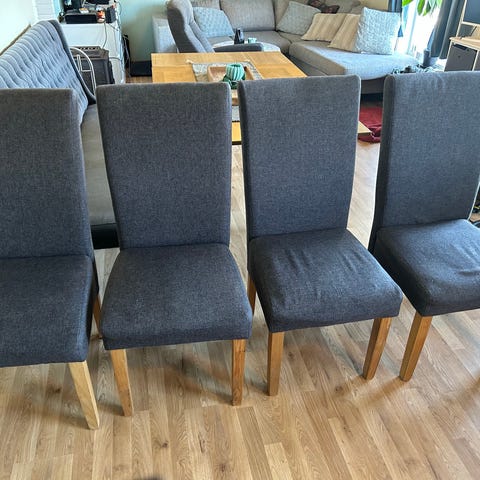 Selger fordi da vi kjøpte de på Finn kom de med en spisesofa som ikke var i samme serie men var veldig lik, var sofaen vi ville ha så nå selger vi stolene siden vi har skaffet oss stolene som hører til.