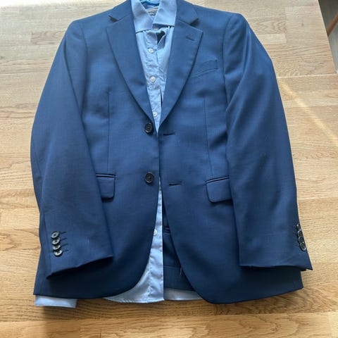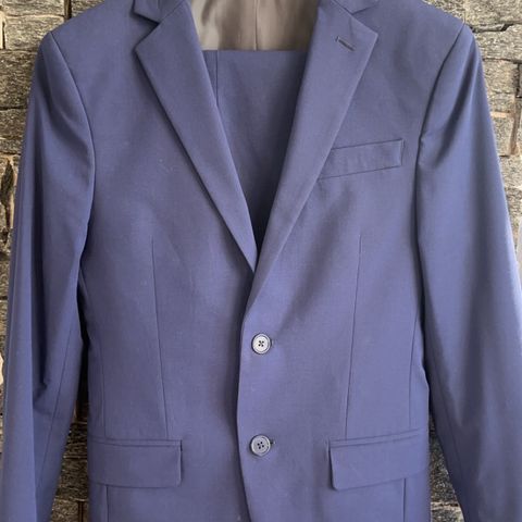 Dressmann dressbukse i marine blå farge, laget av bomull. Passer for barn/herre og jakke har str. størrelse 42.